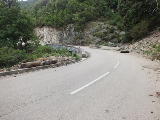 Dort verbrachten wir drei wunderbare Tage, die wir uns mit ausgiebigen Touren durch das Inselinnere und kulinarischen Genüssen versüßten. Natürlich durften auf unseren Ausflügen die typisch korsischen Attraktionen nicht fehlen. Wir machten mit am Straßenrand liegenden Schweinen und Kühen Bekanntschaft. Diese nutzen die Ränder der kurvigen Straßen als Weide und überraschten uns des Öfteren nach einer Kurve mit ihrer Gelassenheit.